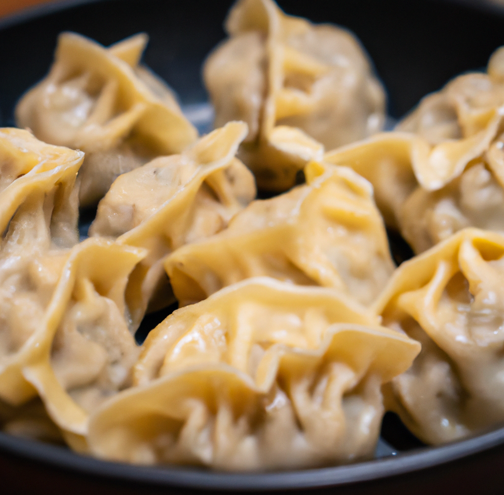 • Take a dumpling wrapper and place a tablespoon of the pork filling in the center. Dip your finger in water and moisten the edges of the wrapper. Fold the wrapper in half and seal the edges by pressing them together firmly. Repeat this process with the remaining wrappers and filling.